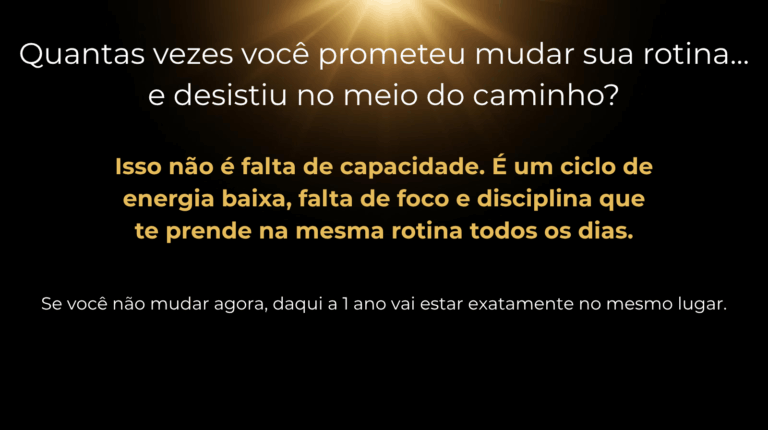 Se você sente que já deveria estar vivendo com mais energia, foco e disciplina, mas ainda acorda cansado, se distrai fácil e desiste no meio do caminho… hoje é o dia de virar esse jogo.